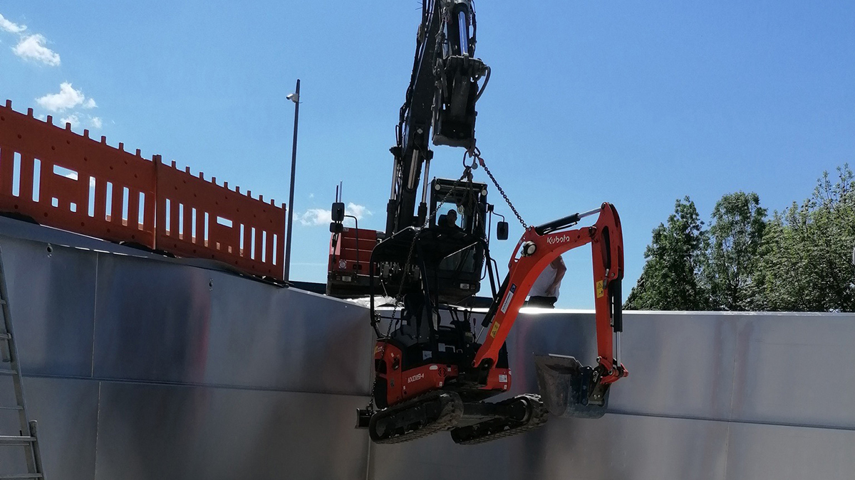 Mit unserem Volvo-Kettenbagger ECR145D, ausgestattet mit umweltfreundlichem Bioöl, stellen wir stabile und langlebige Bauwerke im und am Gewässer her.